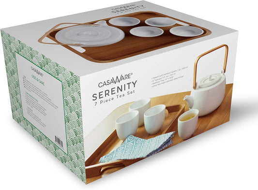 casaWare Serenity 7-Piece Tea Pot Set Gift Boxed (White)