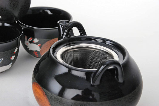 Happy Sales HSTS-RBTMN5, Perfect 5 Piece Ceramic Japanese Design Tea set Rabbit & Moon