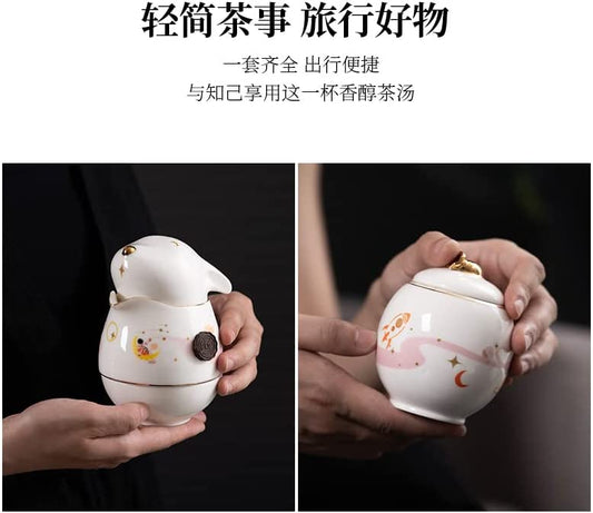 Mini Portable Lucky Cat Tea Set for Two