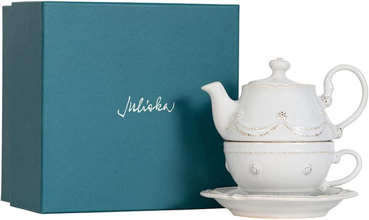 Juliska - Berry & Thread Whitewash Tea for One Set - White Ceramic, Tea Pot, Tea Cup, and Saucer