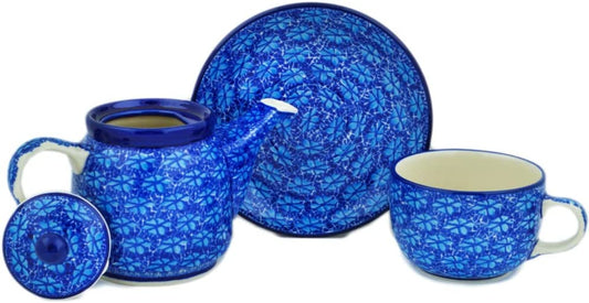 Authentic Polish Pottery 16 oz Tea Set for One made by Ceramika Artystyczna (Deep Into The Blue Sea Theme) + Certificate of Authenticity
