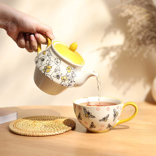 Tea-for-one sets are convenient, compact, and allow for a personal tea experience, and ceramic sets can make for charming décor.